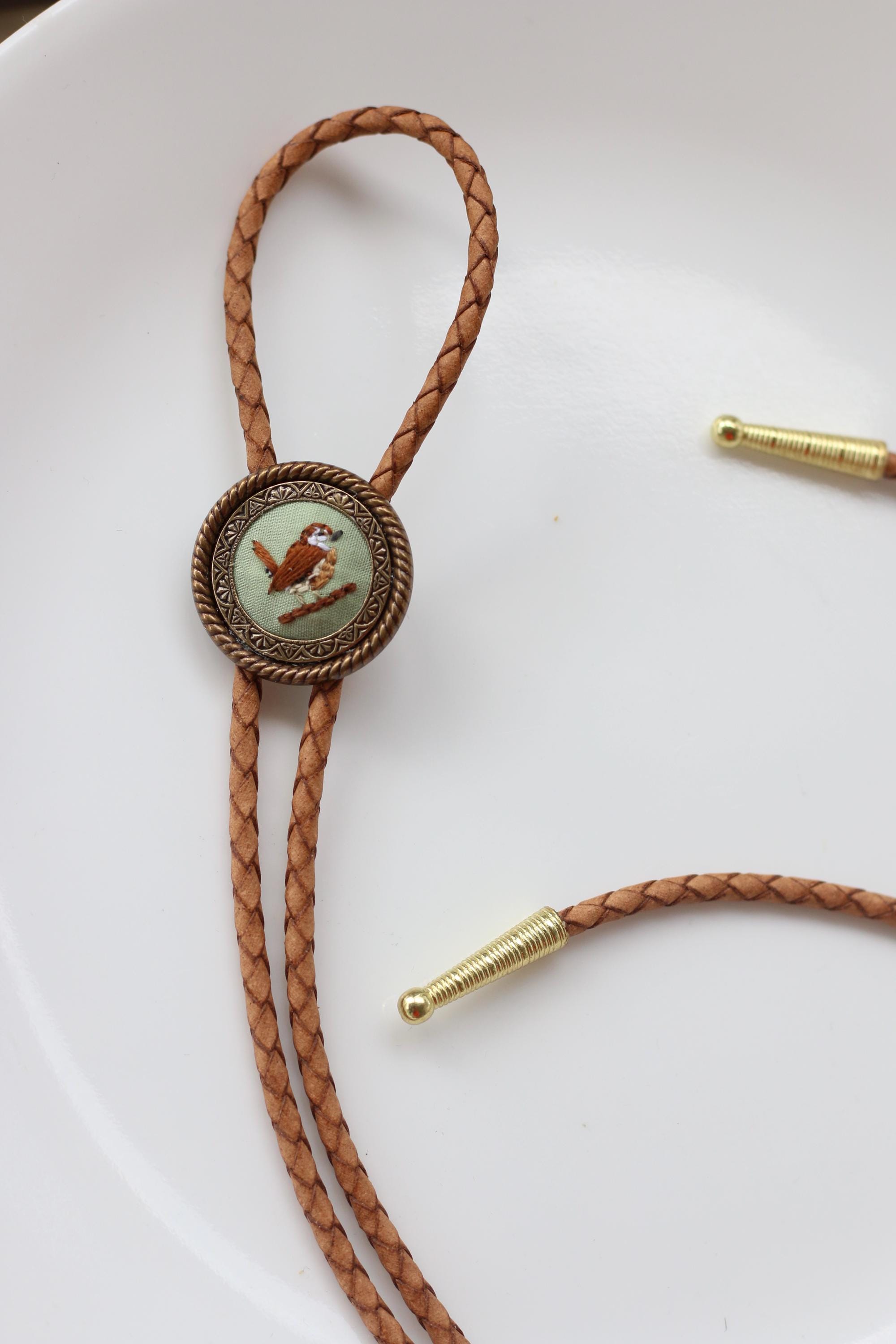 Since these bolo ties are hand embroidered, each piece is one of a kind and might slightly differ from the photographed bolo tie.